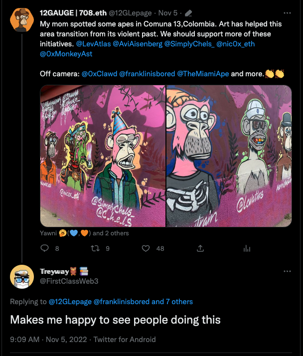 Eddy Rodriguez (Erod) and his team have helped create some incredible street art in Latin America. These murals have made a meaningful change in these artist’s lives and communities. For some it has led to sustainable web3 careers and even resulted in home ownership. Our community reaches far beyond pixels on a screen, however many of these stories and paintings go unseen. During this bear market, pockets are understandably tight and this grant will allow us to continue giving back to these artists.