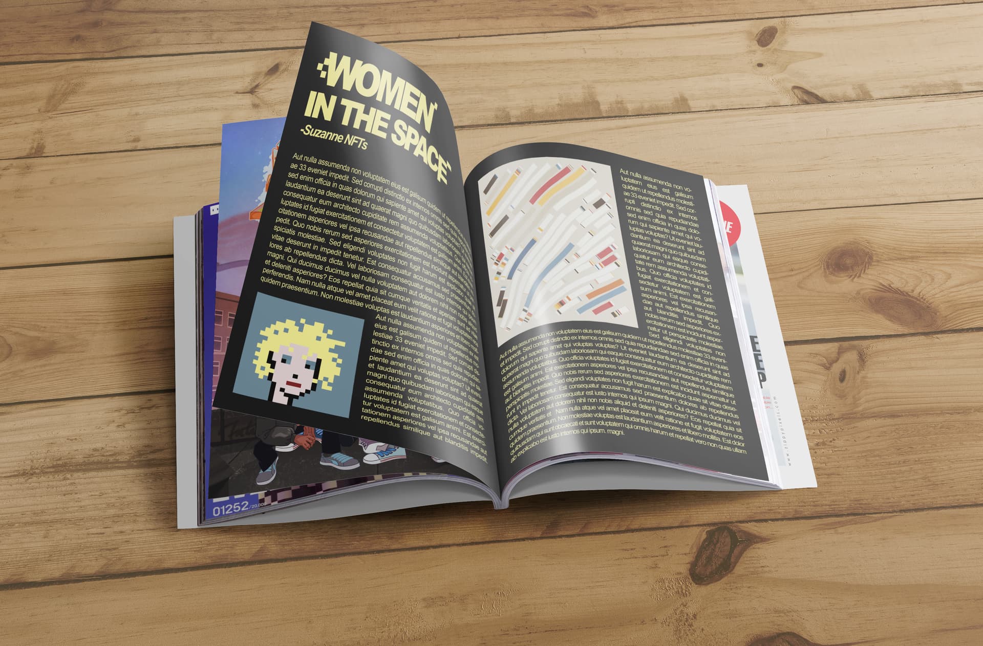 We also want to further-facilitate artists by providing interview space and fair compensation for cover art. Additional features include spotlights on active community members; regional BAYC groups like Bored Club Canada, TaiwanDAO, FrenchApeYC and associations like PinkDAO; women in the space; Blender tips and tech talk; metaverse; memes; music and photography; generative artwork; Meebin with the Meebits; Mutants are INSANE; Mutant Cartel and the Mutant Hounds; Cryptopunks and Cryptopunks history; 10ktf; interviews; features on ApeCoinDAO Special Council members and Stewards; discussions with founders; security tips; advertisements from brands utilizing holder IP (ApeWater, ForeverApes etc); gaming; as well as articles written by contributors sourced from projects like Nouns, Doodles, Gutter Cat Gang, Moonbirds, CloneX, and Deadfellaz. We will also be including advanced in-magazine AR capabilities to bring artwork, advertising and otherwise static NFTs to life triggered by QR codes.