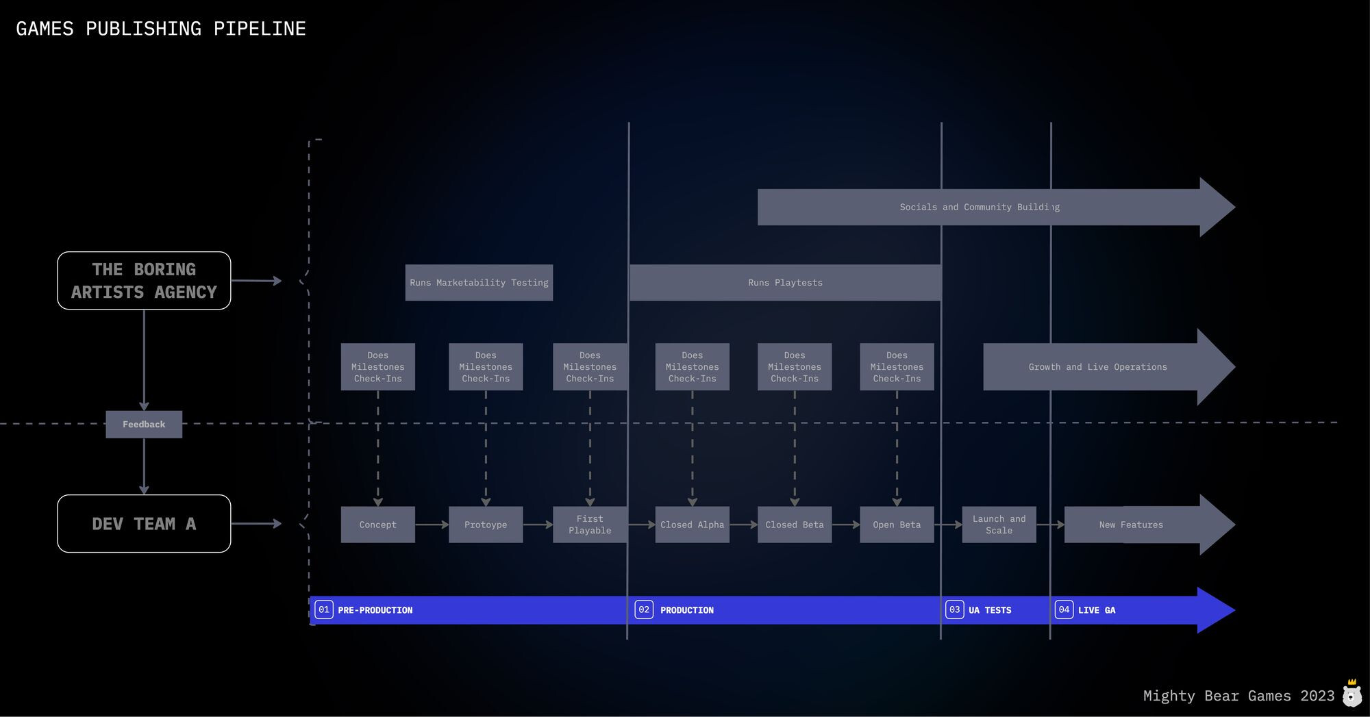 MBG is fully equipped to handle all of the above. TBAA will collaborate closely with partner teams from the outset to integrate Growth features into the development pipeline. This early consideration of Growth and Ops needs ensures real-time data feedback to the development team, fostering a virtuous cycle between publishing and development.