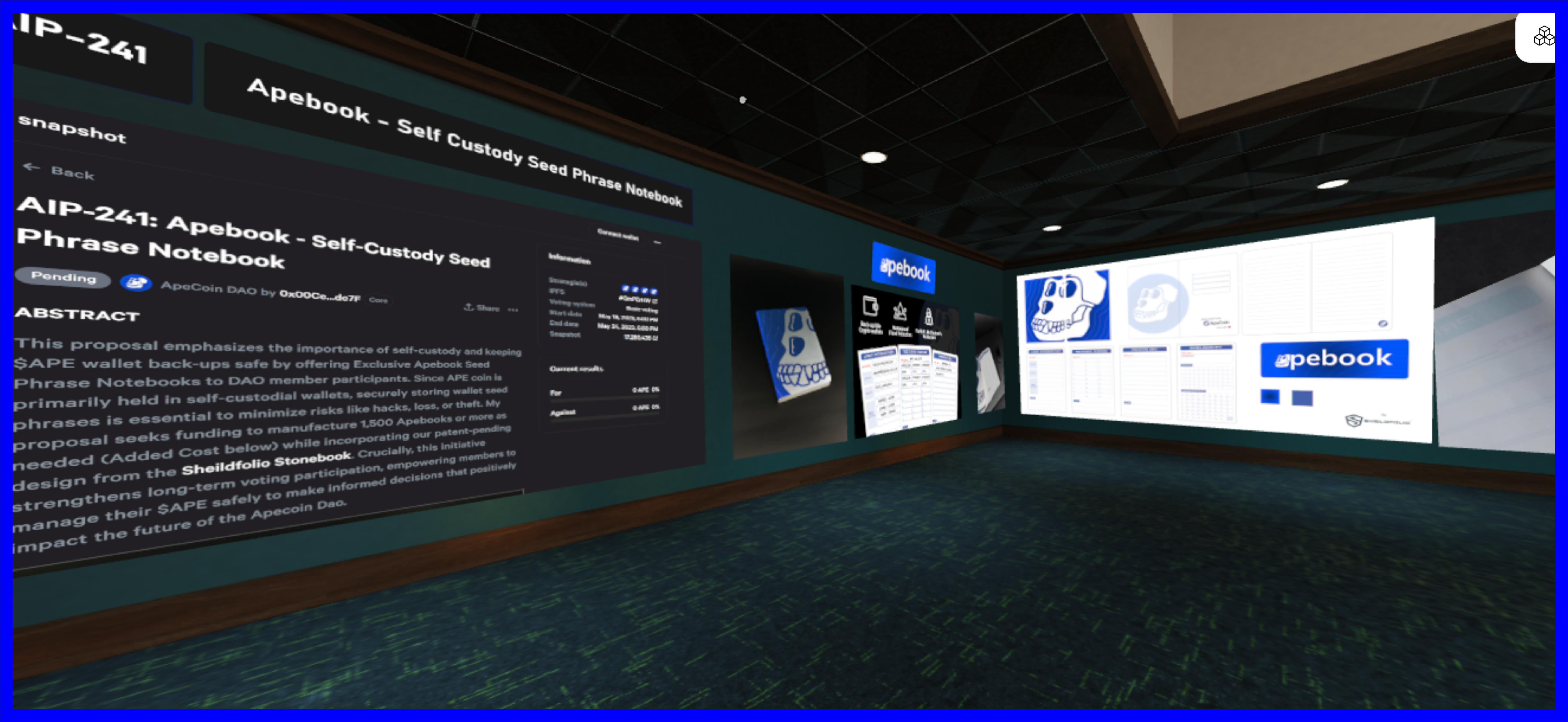 Here, you can get a sneak peek at this week’s upcoming proposals, all displayed on the walls across the space. Stay to mingle, exchange ideas, and maybe even get into live conversations with the Authors behind these AIPs. While I haven’t had the chance to reach out to the Authors yet, it’s on my to-do list, and I’ll be making that happen soon. As I get a feel for our community more, and its needs within this metaverse, I plan to expand and refine this concept further. Stay tuned!